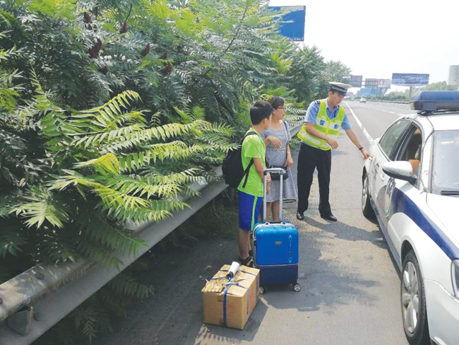 8月16日,一对母子图方便搭乘顺风车返乡,不料被司机甩在高速公路上。所幸被巡逻民警及时发现,将他们送下高速。