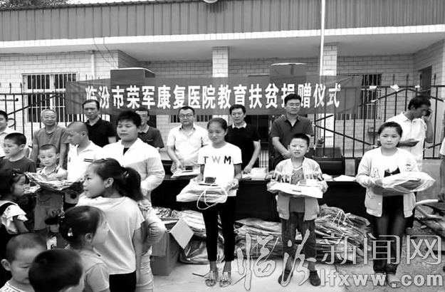 临汾新闻网讯 8月14日上午,在临汾市荣军康复医院驻村工作队和“第一书记”的协调下,由林烨书记带队,全院职工深入到扶贫村大宁县昕水镇杜村,为贫困村的孩子们献爱心,为103名小学生们捐赠了书包、文具等学习用具。该活动让孩子得到了关爱和温暖,也让百姓真正体会到荣军康复医院的真情帮扶。