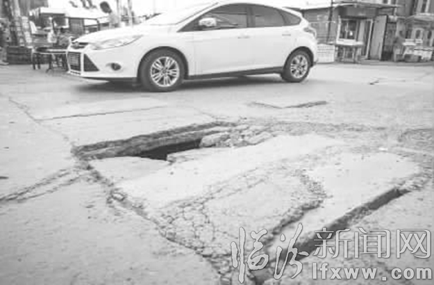 附近居民介绍,此处是一个管道井,由于预制板已经塌下去了,过往车辆只能绕行,希望有关部门赶紧修理一下。
