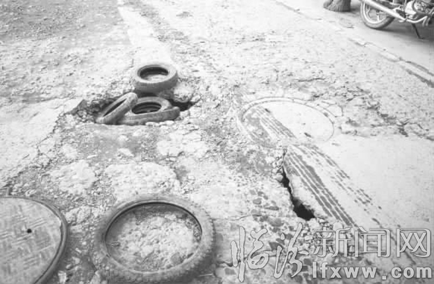 无独有偶,五一路南二巷也出现了类似情况。进入胡同,破烂不堪的路面进入记者视野,继续前行30米左右,路面中央就有两处塌陷,从塌陷的缝隙中依稀可见地下管道,由于塌陷严重,有市民往塌陷的坑内放置了4个轮胎,希望能以此填平路面。在此居住的李师傅表示,这段路成这样已经有很长一段时间了,现在市区的大街道都非常干净整洁,希望有关部门能将市民每天的必经之路赶紧修复,确保行人、车辆出行安全。