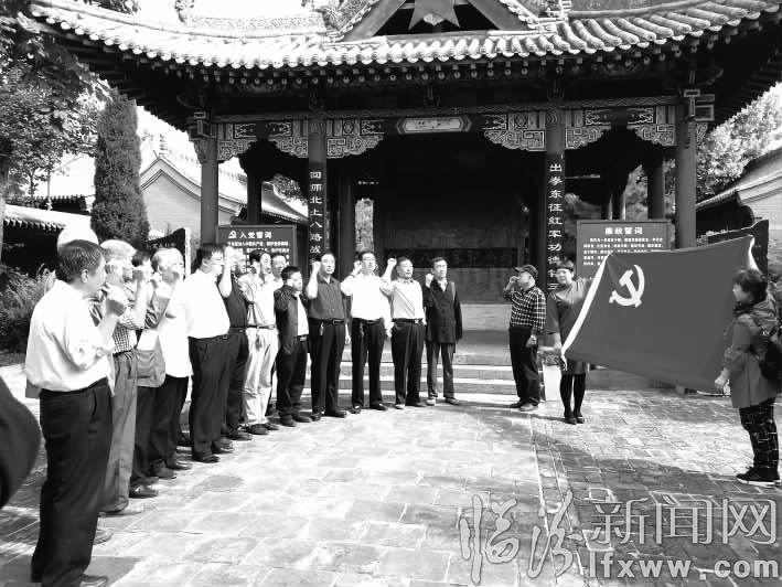9月9日,市周易学会组织全体党员深入洪洞县白石村红军八路军纪念馆开展爱国主义和革命传统教育。图为全体党员在纪念馆内重温入党誓词。刘 晚 摄
