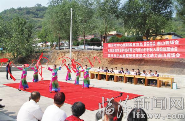 临汾新闻网讯 “今天是个好日子,心想的事儿都能成;今天是个好日,打开了家门咱迎春风……”由临汾市中心医院组织的脱贫攻坚文化助力古县岳阳镇南山村文艺表演,一曲《好日子》在欢乐的舞蹈中拉开古县昌博农业有限公司南山村村民首次入股分红的序幕……9月20日秋高气爽、硕果飘香,这天对于贫困村的贫困农民来说是一个喜庆的日子、开心的日子和收获的日子。