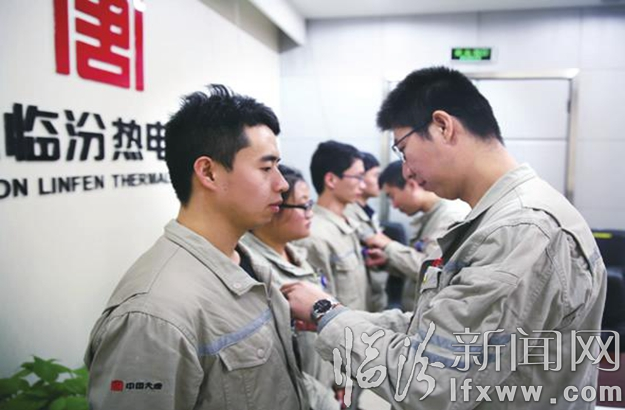 临汾新闻网讯 临汾热电公司坚持“人人都能成才、个个皆可出彩”的人才培养理念,强化人才教育,新员工上岗即签订师徒培训协议,为其能力提升与职业规划进行指导。图为领导为新员工佩戴党徽、团徽。
