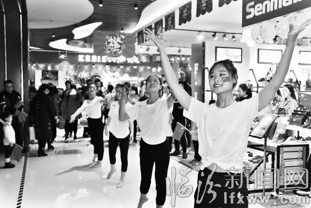 临汾新闻网讯 日前,在市区生龙国际购物中心,上演了一场别开生面的红色经典歌曲“快闪”活动。山西师范大学现代文理学院音乐系的学生们表演了舞蹈《我爱你中国》,演唱了《东方红》等红色歌曲,吸引了众多市民驻足观看。