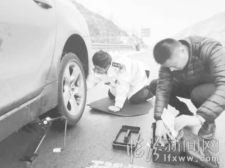 1月7日,一辆北京牌照小轿车在临吉高速行驶到987KM时,防滑链突然断裂并卷进了轮胎,导致车辆无法行驶。车上的司机和乘客都非常焦急,跑下车来寻求帮忙。这时,正在巡逻的民警李新和程磊发现了招手的司机,民警们赶紧下车了解情况,随后又开始充当起“修车工”,经过20多分钟的努力,终于将断裂的防滑链取出,司机和乘客向民警连声道谢。经了解,他们是从光华收费站上高速,要去曲沃办急事,结果刚上高速没走多远车就抛锚了,幸亏高速交警帮助,解决了难题。