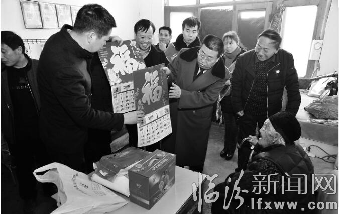 临汾新闻网讯 2月9日,临汾市好运来礼品有限公司党支部的党员代表来到吉县屯里镇安乐村,看望这里的贫困户,并为他们送去米、面、油等慰问品及新春的祝福。