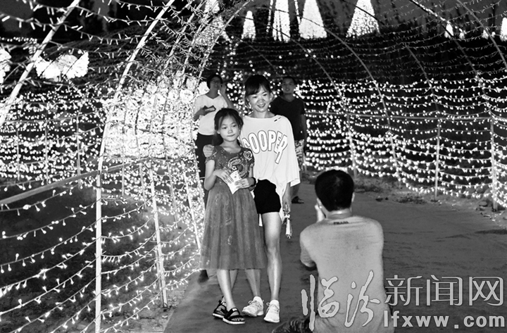 临汾新闻网讯 近日,在市区滨河西路“西荣阁之夜”走进新时代梦幻灯光节上,市民在观看灯光秀。连日来,流光溢彩的灯带点亮灯光节,演绎出一场极致浪漫的视觉盛宴,吸引了众多市民前来观赏。