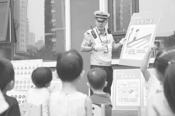 为了最大限度调动幼儿的学习热情,大队民警精心筹备,悉心设计了多个教学环节,力求让幼儿学会、牢记出行安全常识并能在生活中运用。活动中,民警针对学龄前儿童认知和接受能力,利用通俗易懂、生动形象的语言教小朋友们看懂信号灯和交通指挥手势,以及如何行走斑马线,提醒小朋友们在乘坐交通工具和外出期间要自觉遵守交通法律法规,不要在马路上打闹、过马路时要走斑马线,并带领孩子们一起学唱交通安全儿歌。
