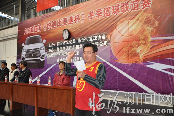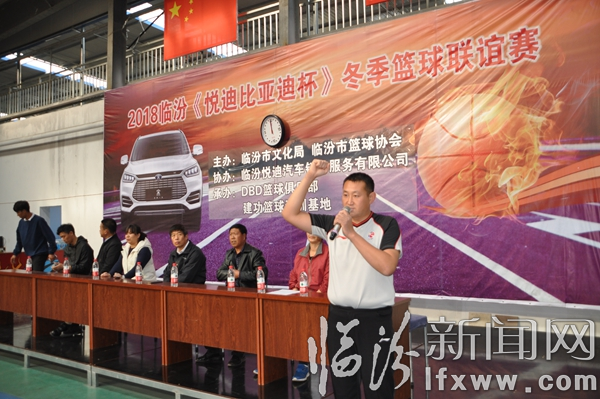 临汾新闻网讯 11月3日,临汾市“悦迪比亚迪杯”冬季篮球联赛在临汾市建功篮球青训基地开赛,来自全市15支球队共300余名篮球爱好者将参加该项比赛。临汾市文化局副局长卫康忠、竞技科科长王红云、临汾市篮球协会秘书长孙正平、副秘书长雷翔等领导出领开幕仪式。