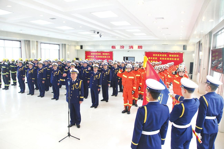 随后,全市消防救援人员庄严宣誓,一声声誓词响彻会场,深刻诠释了临汾消防救援队伍改革转隶后的初心和担当。