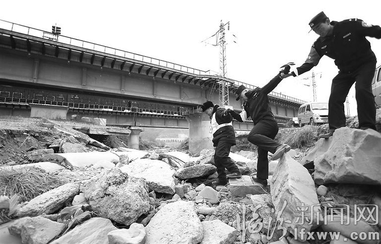 临汾新闻网讯 1月9日,在国家重点工程——世界首条30吨重载铁路瓦日铁路(山西兴县瓦塘镇至山东日照)蒲县段,临汾铁路公安处民警巡逻时途经一处乱河滩。