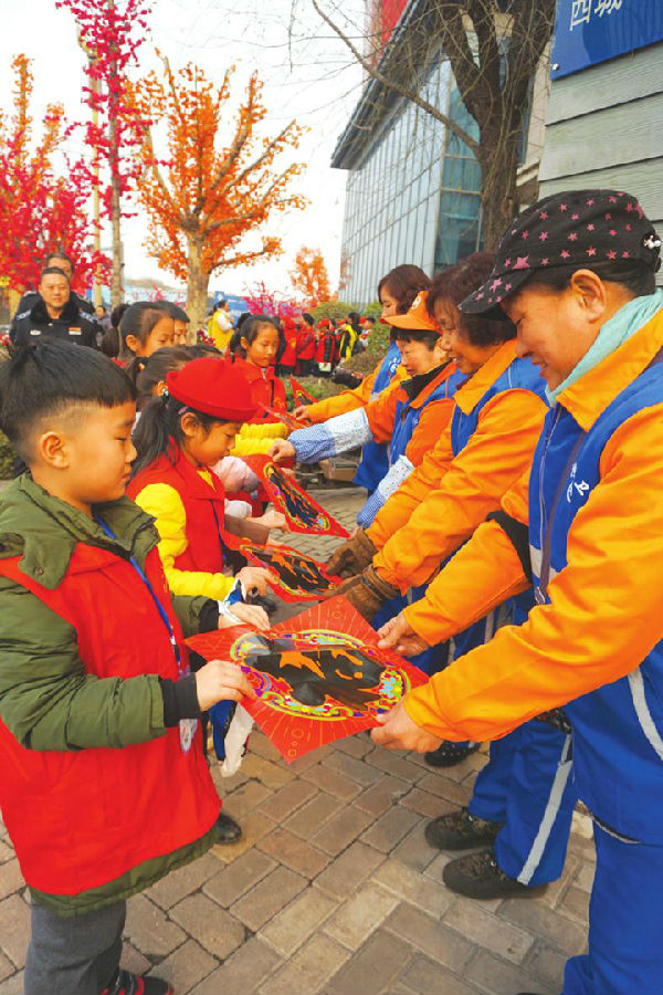 简单的介绍过后,小记者们将由临汾市邮政分公司提供的200多副春联,赠送给了环卫工们,以此表达对环卫师傅们辛苦付出的感谢。