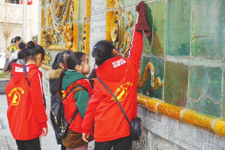 当天的体验地点设立在鼓楼北大街与古城路交接处的四龙壁城市广场附近,临汾日报社志愿服务队和临汾晚报小记者们手持清洁工具,为保护环境贡献自己的一份力量。
