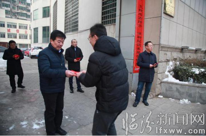 一大早,市分行党委书记、行长李继胜带领党委班子成员,顶着寒风、冒着冰冷,带着对全行员工新年的祝福,7点50分即在门口等待员工的到来,将新春的问候和火红的礼包,亲自送到员工手中,送到员工心里。