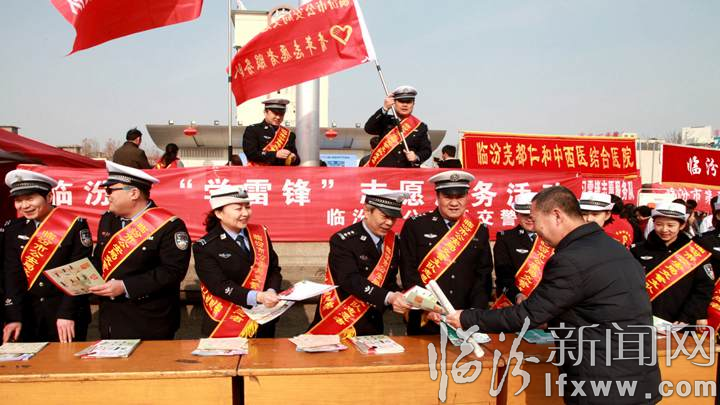 3月4日,临汾公安交警支队志愿者走进辖区公交公司、师大岗、尧庙汽车站等企业、客运站、重点路段,开展交通法规安全宣传。3月5日,支队志愿者身披绶带在平阳广场开展交通法规安全宣传等志愿活动。活动中,志愿者通过展出交通宣传图片、发放交通安全宣传资料开展宣传活动。民警重点向交通参与者宣传了交通法律法规,讲解了违反道交法的危害,提醒大家要提高安全意识,遵守交通法律法规,自觉摒弃交通陋习。同时,向前来咨询违法处理、车驾管业务办理等业务问题的参与者解疑释惑。