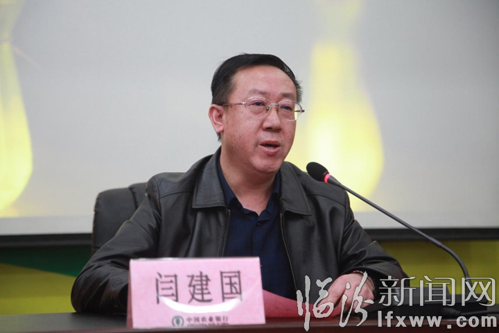 图为:市分行党委委员、副行长闫建国为花艺活动致辞。