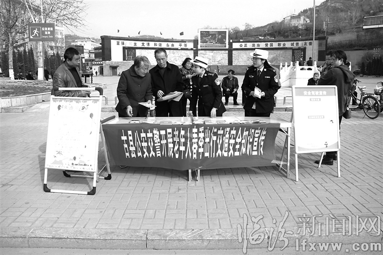 春暖花开,老年人外出散步锻炼活动增多,3月20日下午,古县公安局交警大队宣传科民警在该县岳秀广场开展老年人交通安全宣传活动,进一步加强老年人出行交通安全意识。