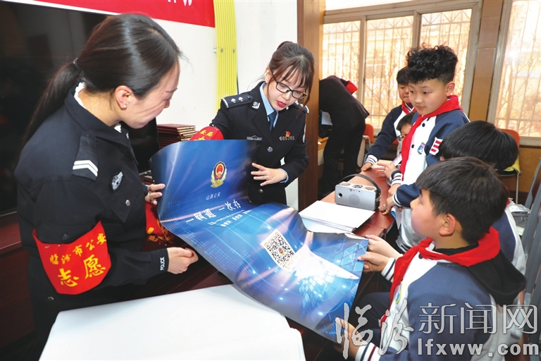 连日来,市公安局积极开展“法制宣传进社区”志愿服务活动,通过此次活动让普法宣传更加贴近居民,引导群众学习法律、崇尚法律,营造了社区良好的法制宣传氛围。图为青年志愿者在育英小学为学生们讲解生活中常见的法律常识。 记者 范韶华 摄