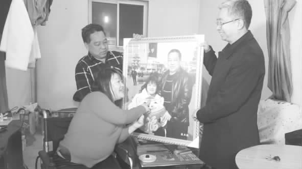 临汾新闻网讯 3月15日,市残联联合临汾市摄影家协会,将拍好的“全家福”照片逐一送到李庆红等6名残疾人手中。图为家住体育南街的孔勤芳收到“全家福”时的高兴情景。记者郭秀婷 赵文家摄