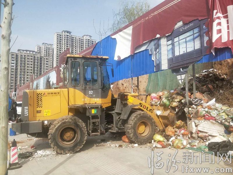 执法队当即会同环卫部门、西街办事处与施工单位进行协调,对围挡墙体进行部分拆除之后,出动十余名环卫工人与三辆机械车辆,对该处垃圾进行了彻底清理。