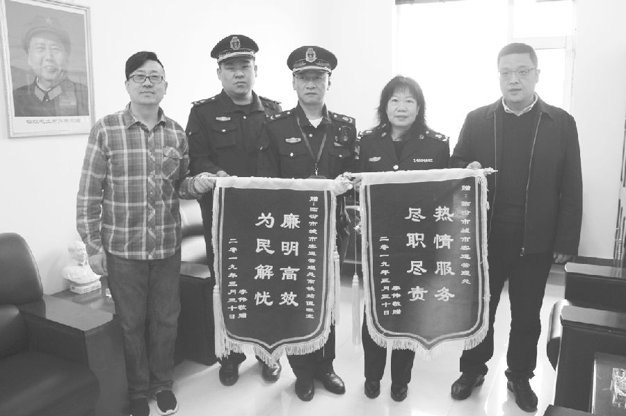 临汾新闻网讯 “因为太忙,一直拖到今天才来,如今这句‘感谢’说出口,心里舒服多了!”4月9日上午,市民李伟带着两面锦旗来到临汾市城市客运管理处,对该单位的梁赟同志在他找行李箱时伸出援手表示感谢,对城市客运管理处在收到他的求助后,认真对待的高质量服务表达了敬意。