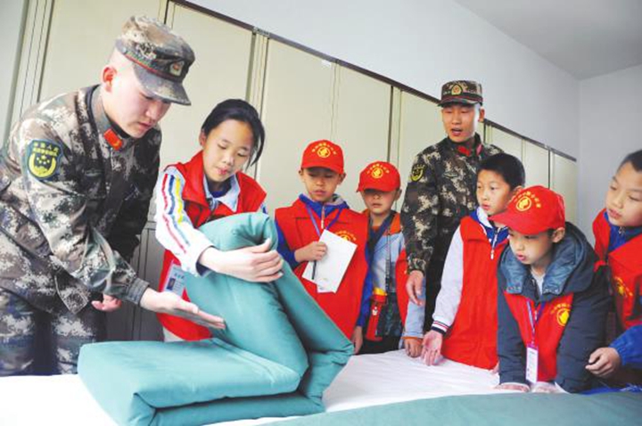 看到一床普通的被子,在战士手中很快就成了棱角分明的“豆腐块”,小记者们都跃跃欲试。“跟叔叔们叠的‘豆腐块’比,我叠的被子就像是‘花卷’,回家后我要好好练习叠被子,让爸爸妈妈对我刮目相看。”一位小记者充满自信地说道。