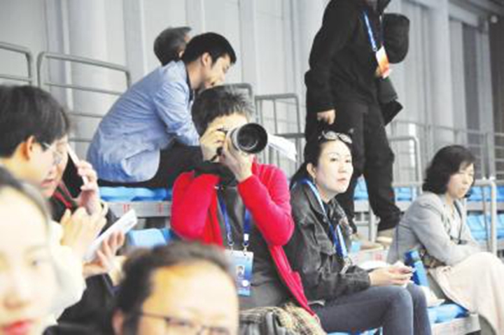 在观看席,一位端着“长枪”的家长吸引了记者的注意,只见她时而拿着相机拍照,时而拍手鼓掌。“孩子正在场上进行测试,我用镜头把这些画面记录下来……”该家长对记者说,我们是前天从北京乘坐高铁来的,孩子目前整体的状态还不错,临汾给我的感觉也特别好,太惊艳了!”“我来自黑龙江齐齐哈尔,特意陪着孩子来的,到目前为止孩子还没有‘上冰’,眼下我最担心他能否适应场地。”家长赵鑫边说边为孩子进行着“试冰”前的准备工作。