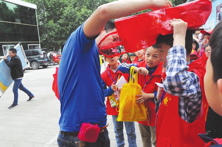 “当地震来了我们怎么办?是跑,还是躲避呢?”随后,临汾蓝天救援队队长李刚“闪亮登场”,他亲自教授小记者正确的逃生姿势。同时,他特意指出:“当地震发生时,我们应该做到就近躲避,及时借助书包、书本等物件保护头部。避震时应选择结实、易于形成三角空间、有支撑的地方。”紧接着,小记者们进行“情景模拟”,用实践检验学习成果。可是,不少小记者内心有些慌乱,现场一时乱成一锅“粥”。在李刚的引导下,大家牢牢掌握了逃生自救方法。