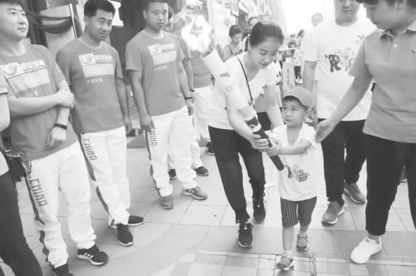 随着第一棒小火炬手的出发,现场气氛也被点燃,火炬护卫队和家长们一起向下一个传递点进发。