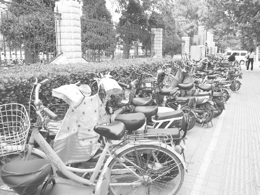 临汾新闻网讯 自行车、电动自行车全部停放在划定的白线内,一排排整齐有序,停放得当,个别停放不规范的,市市容监察支队的工作人员都会将其摆放整齐。这是5月27日下午,记者在解放西路临汾一中、平阳中学、精华中学三所学校门口看到的景象。