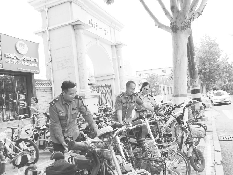 “为了切实做好这项工作,我们就校门口非机动车如何规范有序地停放进行了深入讨论,并制定了具体措施。”市市容监察支队北城大队邓队长介绍,经过一段时间的治理后,三所学校门口的非机动车已经实现了规范有序停放。”邓队长介绍,市市容监察支队工作人员在三所学校的校门口用白线划定了停放位置,制作了上下台阶用的斜面通道,并与三所学校的校领导协商沟通,利用课间休息时间向广大师生发放《倡议书》,利用师生微信群、家长微信群进行宣传教育,倡导广大师生及家长积极配合管理部门,维护市容秩序,做到文明骑行,有序停放,自觉维护市容市貌。