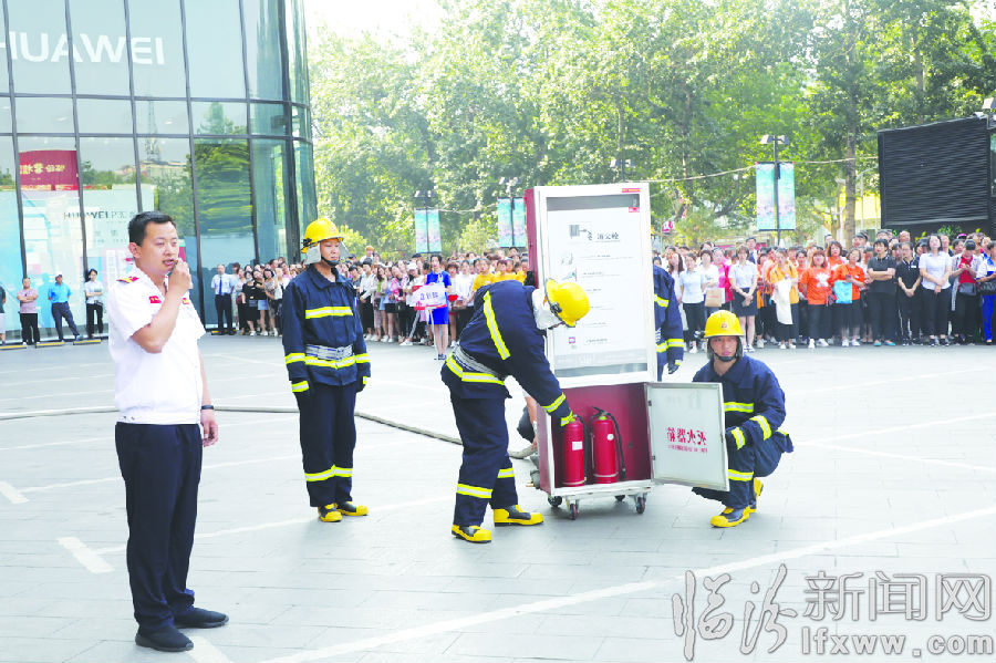 临汾新闻网讯 6月18日,尧都区解放路办事处在生龙国际门前广场组织开展了“防风险、除隐患、遏事故”为主题的消防应急演练。