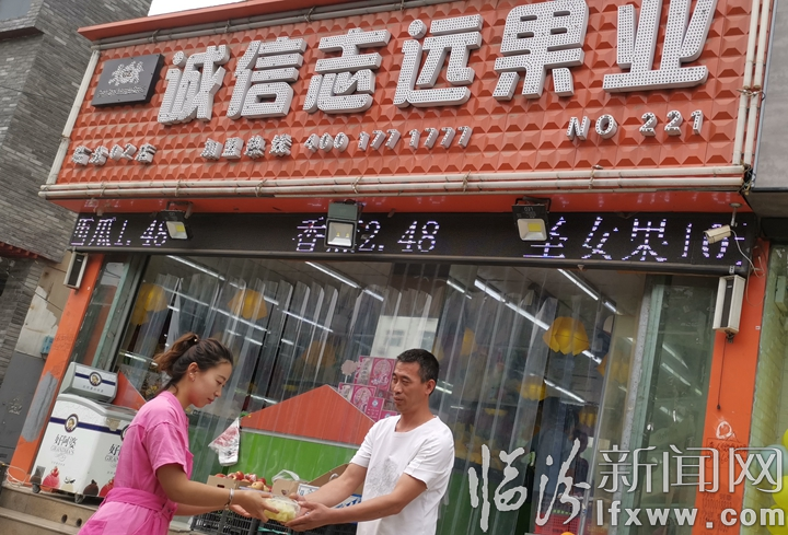 临汾新闻网讯 高考、中考期间,临汾贡院街诚信志远果业把削好的果品打包,摆放在马路边,在烈日下为考生送上一份甘甜,献上一份大爱,受到市民广泛称赞。(柏东丽)