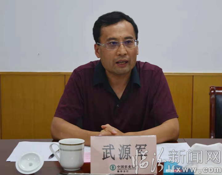图为:省分行高级专家武源军在调研会上作重要讲话。