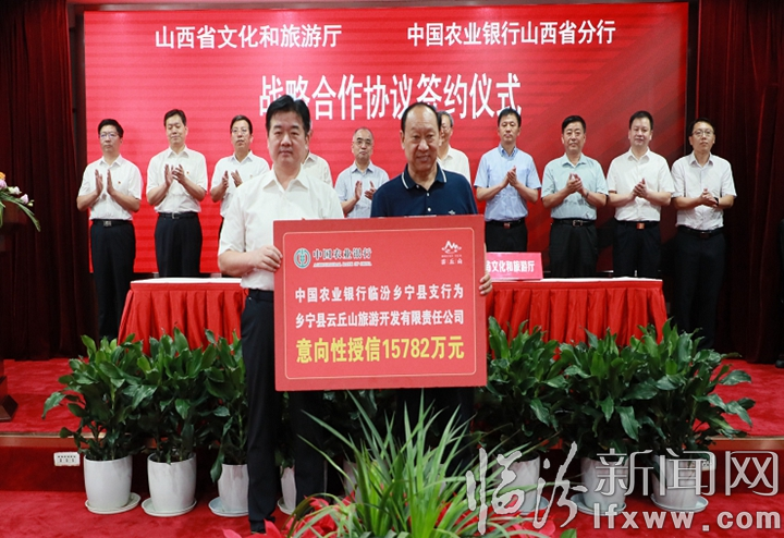 临汾新闻网讯 为进一步探索金融支持旅游产业发展的有效途径,实现旅游业与金融业的融合发展和共同提升,8月12日,山西省文化和旅游厅与中国农业银行山西省分行在太原举行战略合作协议签约仪式。省分行党委书记、行长禹修德携省行相关领导出席会议。临汾分行党委书记、行长李继胜与乡宁县云丘山旅游开发有限公司董事长张连水现场签订战略合作协议。