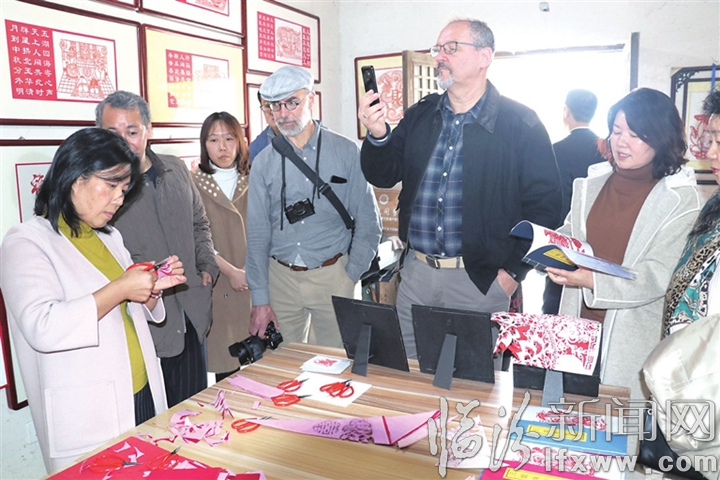 临汾新闻网讯 11月8日,襄汾荷花小镇,我市非遗项目——襄汾剪纸的传承人薛丽琴正在向游客展示传统剪纸的魅力。