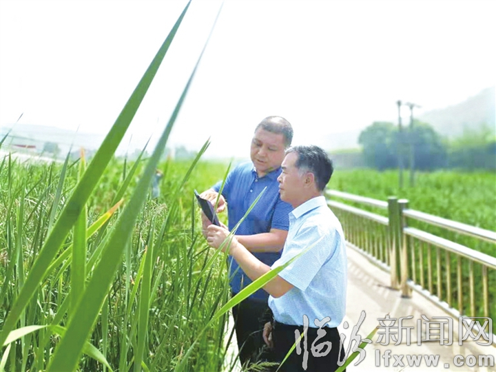 乡宁县投资903万元,实施鄂河人工湿地水质净化工程。工程完工后,鄂河水质将达到地表水Ⅴ类,原有的水生态系统也会逐步恢复。图为市生态环境局乡宁分局局长李国荣陪同省创卫专家组在鄂河人工湿地评估检查。