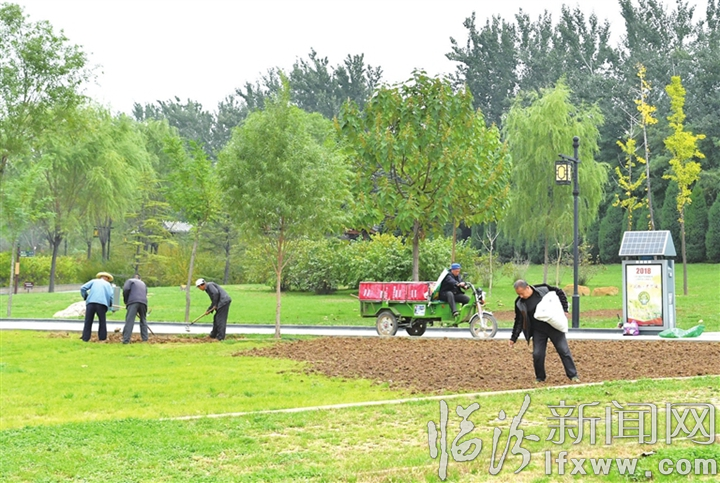 临汾新闻网讯 近日,市区汾河生态公园针对绿地、绿化带出现部分花草树木死亡现象,对园区内绿地进行苗木补植,进一步提升绿化景观效果。