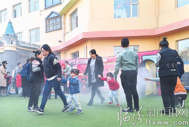11月26日,在市红黄蓝幼儿园,孩子们在家长陪护下参加消防模拟演练。当日,在消防部门的专业指导下,该园举办了大型亲子消防演练。演练采取消防安全亲子课堂授课、消防模拟逃生、消防灭火演练等方式进行。