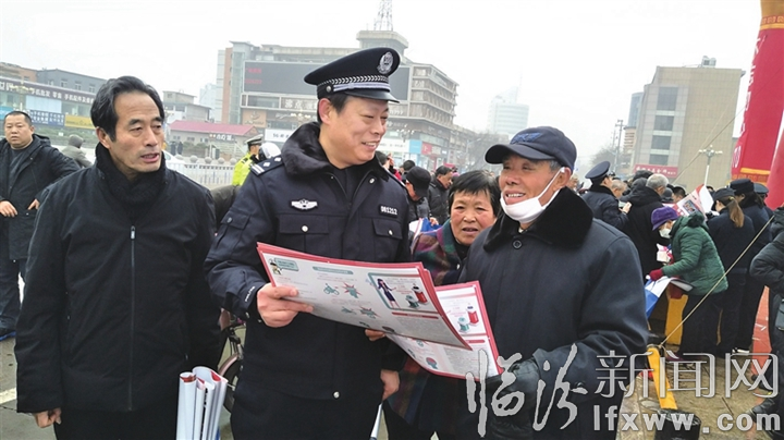 临汾新闻网讯 在全国第34个110宣传日期间,市公安局直属分局组织民警在市区平阳广场开展“不忘初心110 共建共治享安宁”主题宣传活动。活动现场,民警通过设置展台、摆放展板、发放宣传资料、咨询答疑等形式,向过往群众讲解安全防范和自我救护的基本常识、实用技巧及如何正确拨打110、报警时应该注意的事项等内容,与群众零距离接触、面对面互动,营造浓厚宣传氛围,不断提升人民群众对110的理解和支持。