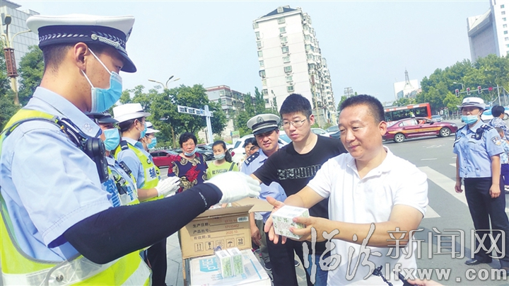临汾新闻网讯 为了给坚守一线的交警防暑降温,7月13日,临汾竹林大药房携手太极集团为市公安局交警支队赠送了藿香正气水和矿泉水等防暑用品。