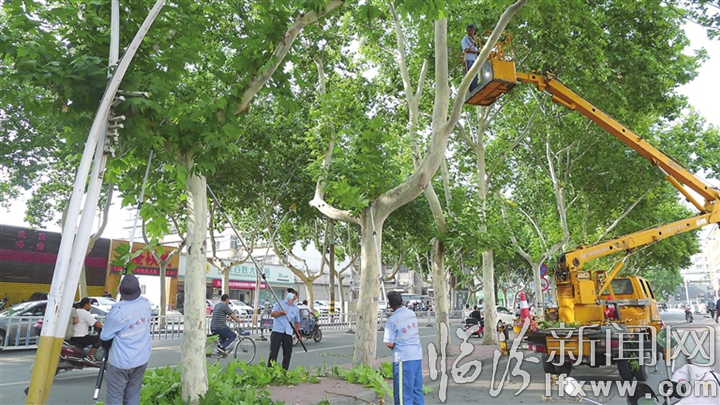 临汾新闻网讯 一到夏天,各种树木开始“疯长”。枝繁叶茂的行道树虽然带来丝丝清凉,但也给行人带来诸多不便。近段时间,市城市绿化一队对市区解放西路、解放路、平阳南北街等主干道的行道树进行修剪,塑造优美树形的同时“剔除”遮挡视线的枝叶,“亮”出沿路设置的交通指示牌,消除枝叶过密带来的安全隐患,有效改善了街道环境。