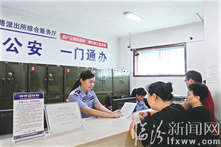 临汾新闻网讯 自“一门通办”综合服务业务启动以来,市公安局直属分局辖区各派出所积极通过“一门通办”为群众办理相关业务,提供优质、快捷、高效的服务,切实让群众进一次门、找一个人,办结全部业务。图为解放路派出所民警向前来办事的市民宣传“一门通办”相关业务。