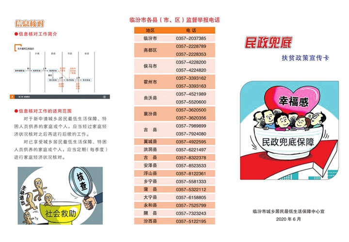今年是全面建成小康社会收官之年,也是脱贫攻坚决战决胜之年。临汾市民政局坚持保基本、兜底线、救急难、可持续的工作思路,补齐民生短板、多解民生之忧,促进社会公平正义,积极稳妥进行社会救助,不断增强困难群众的获得感、幸福感、安全感。为了更好地做好低保救助工作,现对相关政策进行宣传、解读。