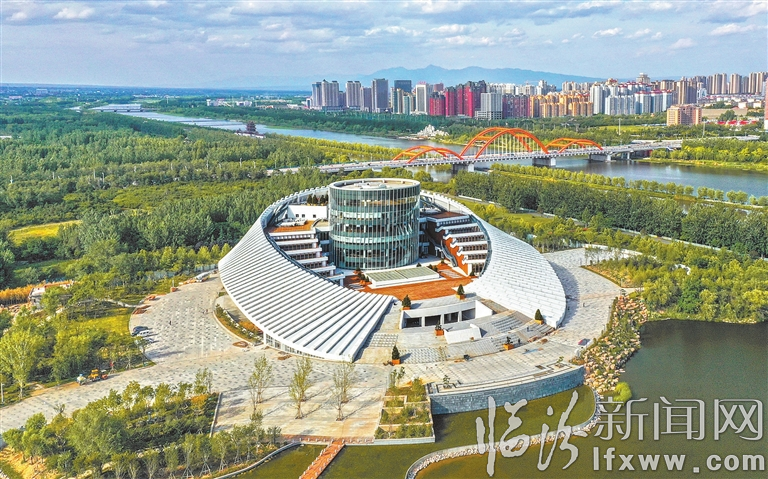 2020年8月4日,航拍镜头下的涝洰河生态公园,景色如画,引人入胜。