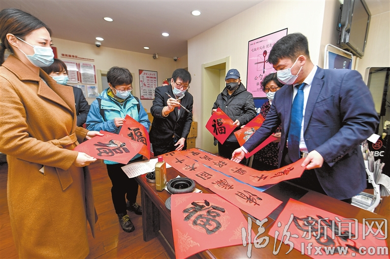 临汾新闻网讯 连日来,工商银行临汾分行师大支行开展了“迎春送福”书写春联迎新春活动,山西师范大学书协的老师们挥毫泼墨,将一副副写满祝福的春联送到市民手中。