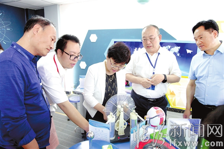 省科协普及部部长刘子良(右二)、市科协主席赵素丽(右三)在霍州实验小学调研。