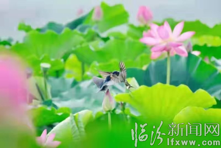 临汾新闻网讯 盛夏时节,市区锣鼓大桥汾河畔荷花娇艳绽放,燕子妈妈忙着育雏,矫健轻盈的身姿,曼妙的飞舞,画面唯美。