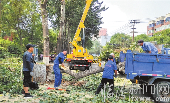 对于正在现场指导作业的市园林事业发展中心管理科三中队中队长刘丽丽来说,这种冒雨作业已习以为常。汛期以来,该中心管理科工作人员每天7时出门,对负责片区的所有树木进行“把脉问诊”。“只要发现有枯枝、空心树木、断枝等隐患,都会第一时间通知作业人员进行处置,以防大风大雨刮落掉地带来危险。”刘丽丽说,这些天,她和同事每天坚守阵地,一趟趟进行巡查,尤其是每次大风暴雨来袭,别人都往家里跑,他们却往街上跑,就是为了查看有无倾倒的树木,好在第一时间发现、消除隐患。