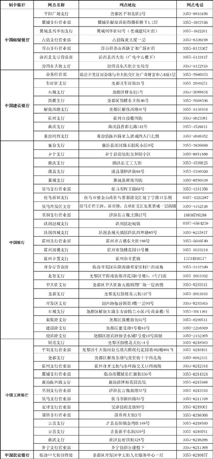 临汾市开通“交通一卡通”功能第三代社保卡网点信息